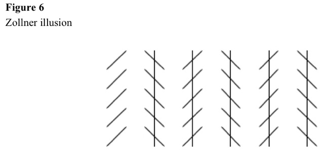 Radial rays, with two horizontal lines, make illusions. See Figure 4.