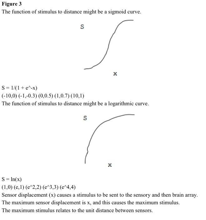 Perhaps, stimulus intensity versus distance graphs to sigmoid curve. See Figure 3.