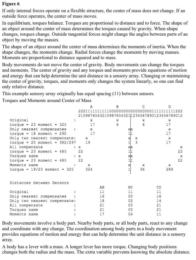 For flexible structures with only internal forces, mass center does not move. Outside forces move mass center. See Figure 6.