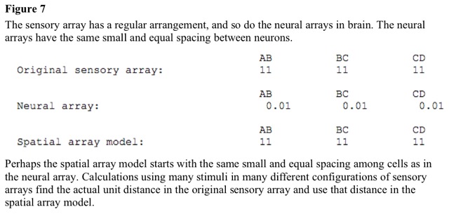 Retinal ganglion cells, thalamic neurons, and cortical neurons form arrays with equal spacing between neurons. See Figure 7.