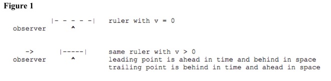 When stationary observers look at moving rulers, ruler points do not have same time. See Figure 1.