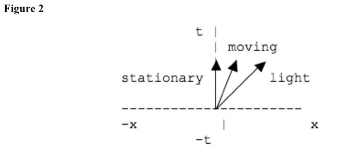 On space-time reference frames, moving events trace vectors. Stationary objects trace vectors parallel to time coordinate. See Figure 2.