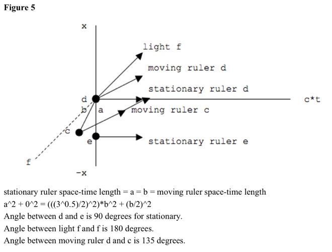 Stationary observers calculate that stationary rulers spread over space only. Stationary observers calculate that moving rulers spread over space and time. Stationary and moving rulers have same space-time separation. See Figure 5.