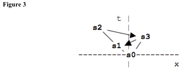 See Figure 3. Moving observers have tilted hyperplanes of space-like space-time events relative to object going from s0 to s1 to s2. They see signals from s2 as going backward in time. Moving observers have different tilted hyperplanes of space-like space-time events relative to object going from s0 to s3. They see signals from s3 as going backward in time. Object going from s0 to s1 to s2 appears to receive reflected signals from s3 at s1, before signals left s2.